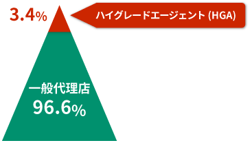 全国約25,214店(2024年度末現在)の委託代理店のうち、HGA認定をされている代理店は、わずか3.4%です。